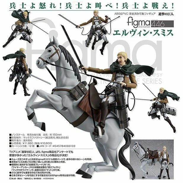 From the Anime series "Attack on Titan" comes a Figma Action figure of Erwin Smith on his trusty horse.