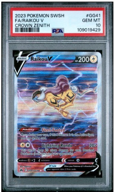 PSA 10- RAIKOU V #GG41 FULL ART - 2023 POKEMON SWORD & SHIELD - CROWN ZENITH GRADED CARD