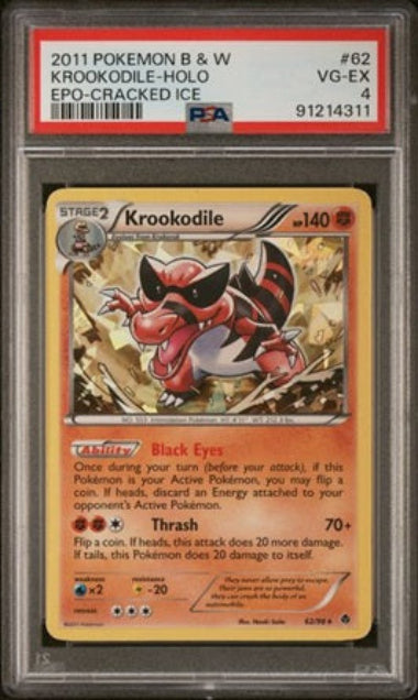 PSA 4 - KROOKODILE #62 - 2011 POKEMON BLACK & WHITE EMERGING POWERS - CRACKED ICE HOLO GRADED CARD