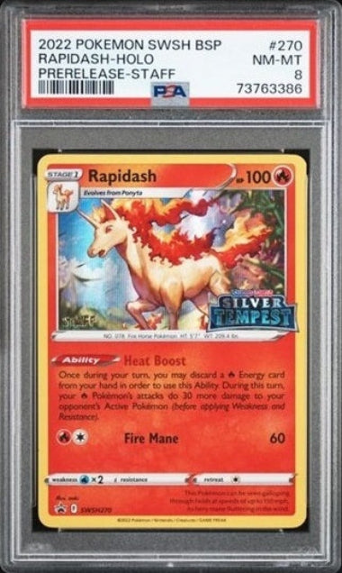PSA 8 - 2022 POKEMON RAPIDASH #270 - PRELEASE - STAFF - SWSH BLACK STAR PROMO