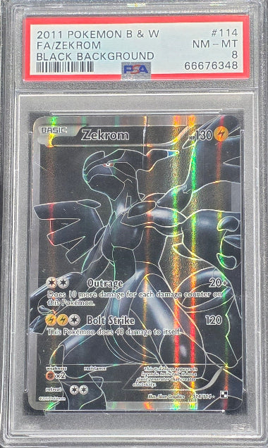 PSA 8 - ZEKROM #114 FULL ART - 2011 POKEMON BLACK & WHITE - BLACK BACKGROUND GRADED CARD