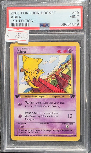 PSA 9- ABRA #49- 2000 POKEMON 1ST EDITION - TEAM ROCKET - GRADED CARD